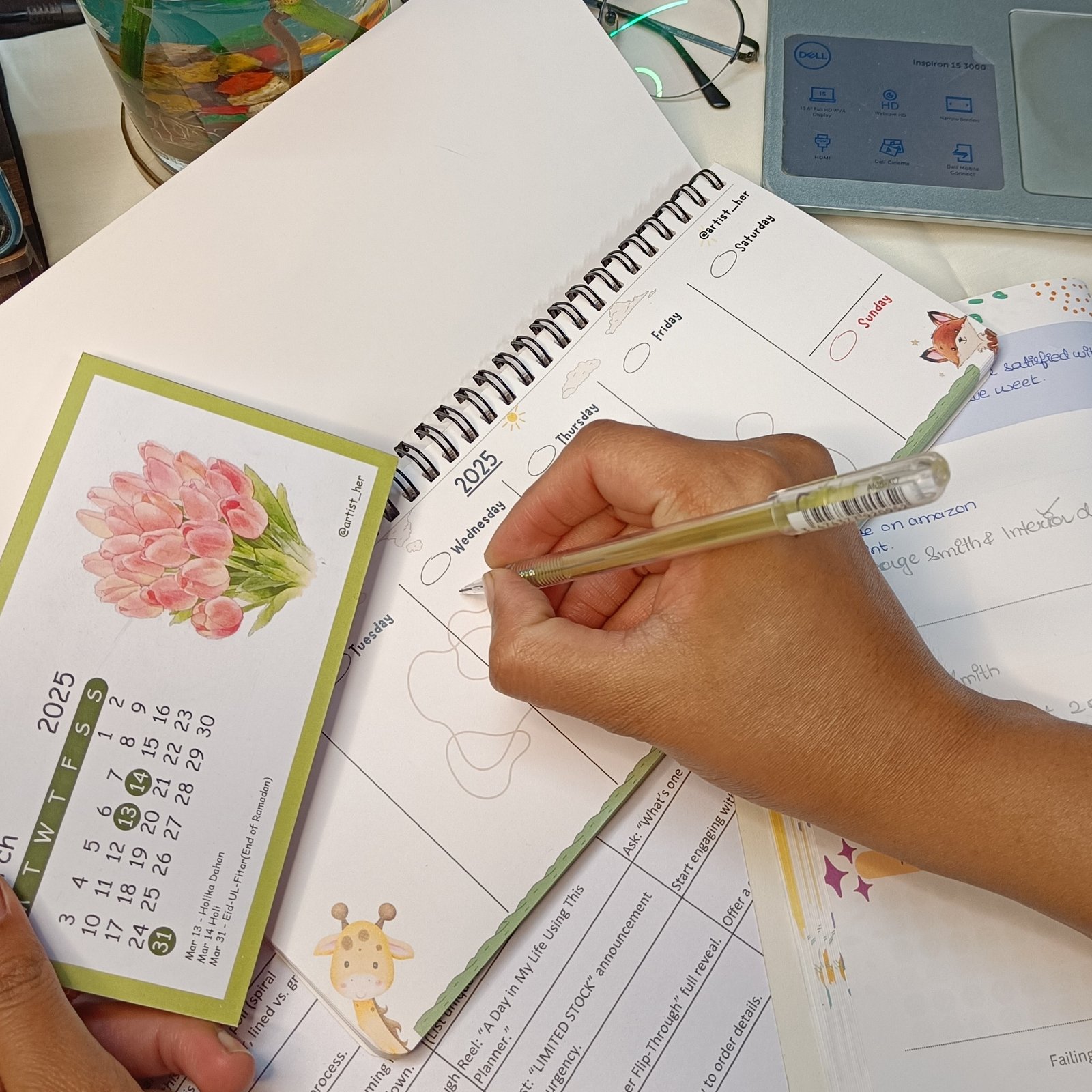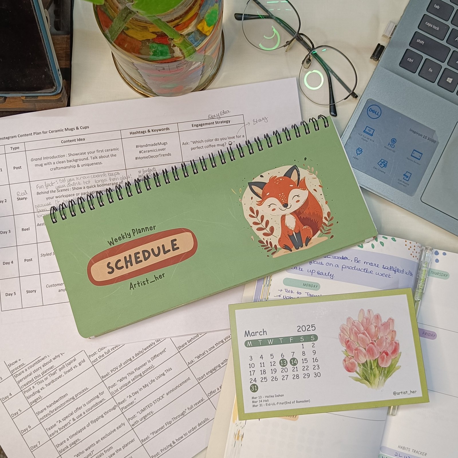 Meet your new desk companion — the Artist_her Weekly Planner, thoughtfully designed to help you plan, reflect, and create your dream week with ease (and a little cuteness 🦊).
