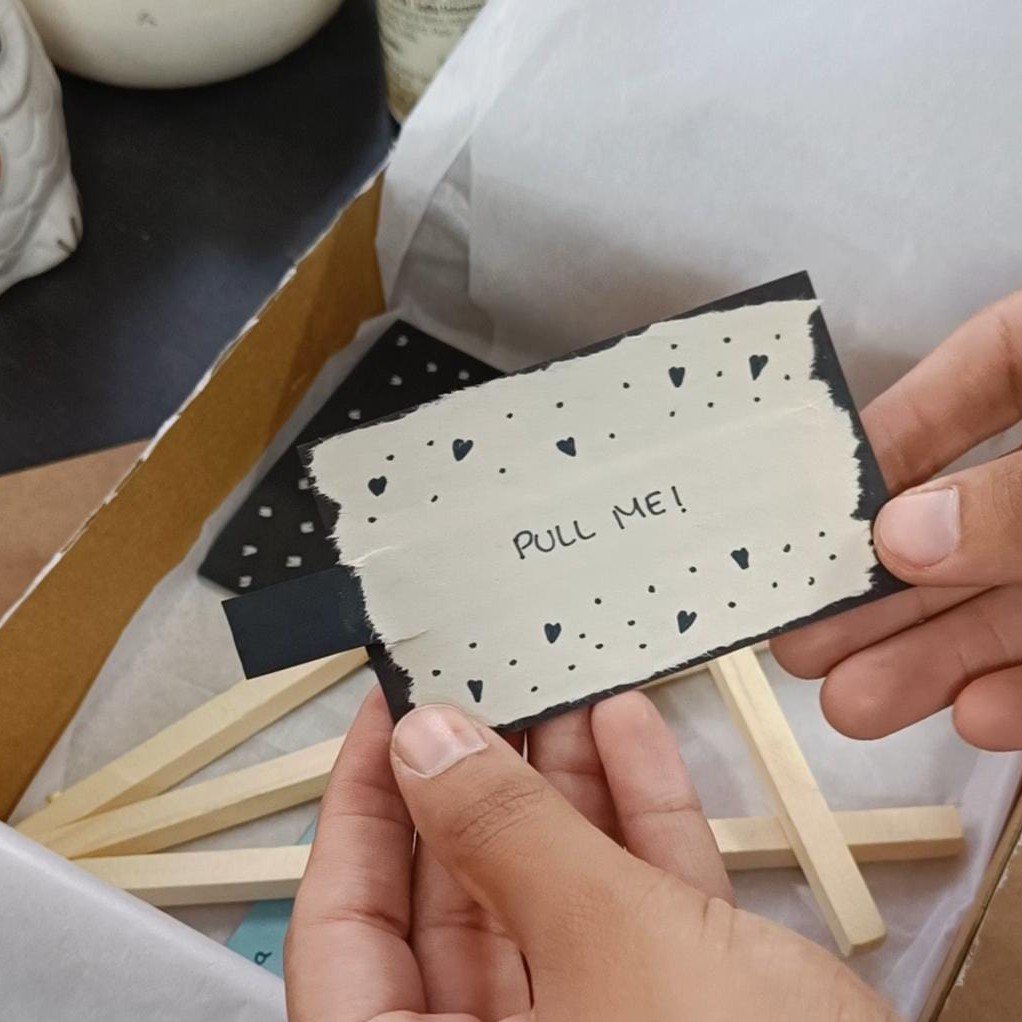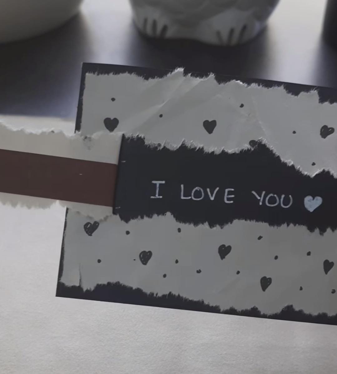 Express your love in the most personal and creative way with this handmade pull-tab reveal card. Designed with torn-edge detailing, minimal heart doodles and a clean monochrome aesthetic, this card holds a hidden message that appears when the tab is gently pulled out. The reveal of “I Love You” adds an element of surprise and emotion, turning a simple gesture into a memorable moment.